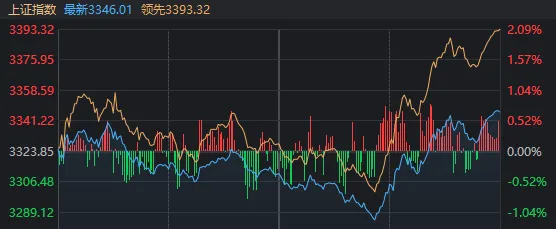 沪指从最低3284.13点一起拉升,尾盘收至3346点。其他指数弘扬更强,尤其早盘就偏强的双创指数,涨幅则扩大至2%以上。